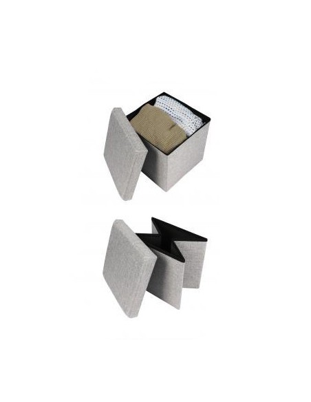 Puf arcón plegable gris con forma cuadrada y estructura fabricada con madera MDF.