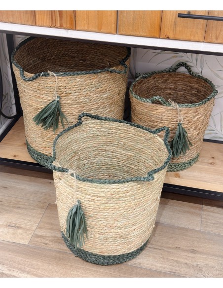 Disponible en tres tamaños. Medidas; grande: 38x38x42cm, mediana: 33x33x36cm, pequeña: 28x28x30. Al tratarse de materiales naturales las medidas pueden variar ligeramente.