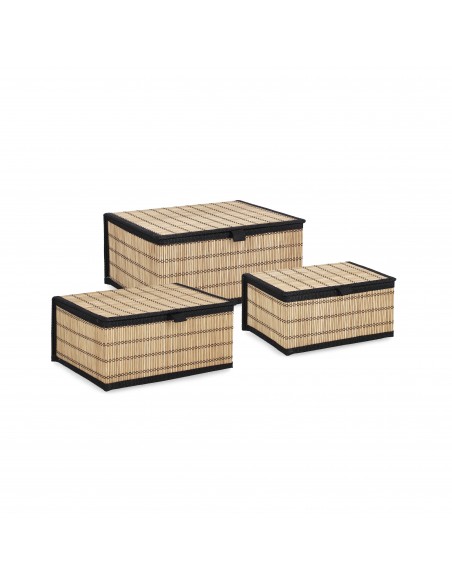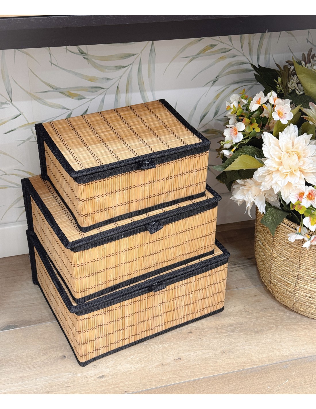 Prácticas cestas organizadoras rectangulares de bambú con tapa, perfectas para mantener en orden cualquier espacio de la casa.