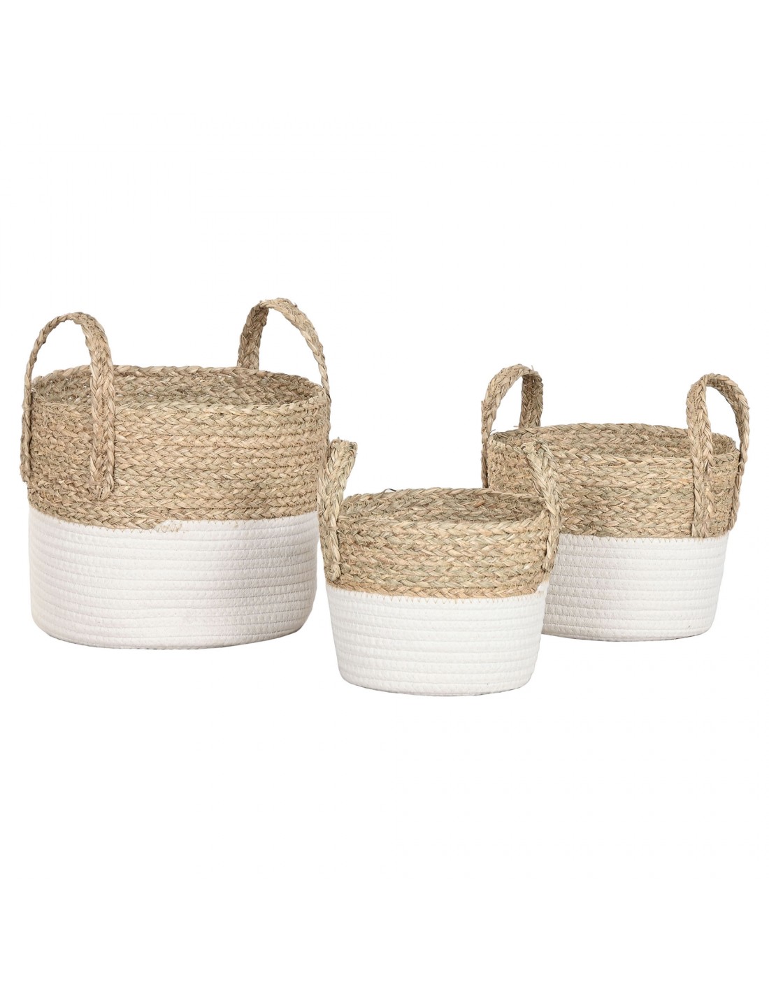 Hay tres tamaños disponibles. Medidas; grande: 30x30x31cm, mediana: 25x25x26cm, pequeña: 21x21x22cm. Al tratarse de materiales naturales las medidas pueden variar ligeramente.