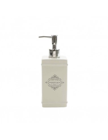 Dispensador de jabón de cerámica con forma cuadrada y diseño elegante, decorado con un discreto grabado frontal.