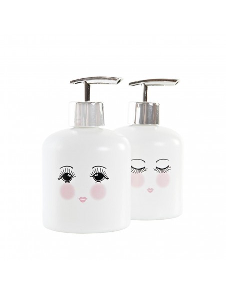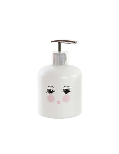 Este dosificador de cristal blanco destaca por su diseño de rostro con mejillas sonrosadas, disponible en dos modelos diferentes: uno con los ojos abiertos y otro con los ojos cerrados.