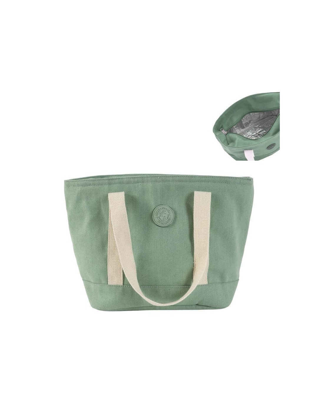 Bonita bolsa térmica de estilo casual en color verde con asas y cierre de cremallera.