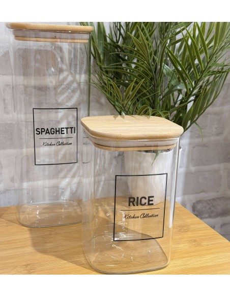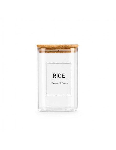 Este práctico tarro de cristal con tapa de bambú es ideal para almacenar arroz de manera organizada y protegida.