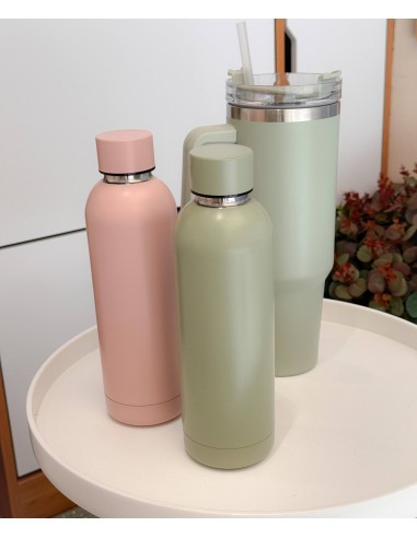 Práctica botella térmica en color verde suave, con diseño minimalista y acabado mate que la hace elegante y atemporal. Fabricada en acero inoxidable, mantiene la temperatura de tus bebidas durante horas. No apta para lavavajillas.