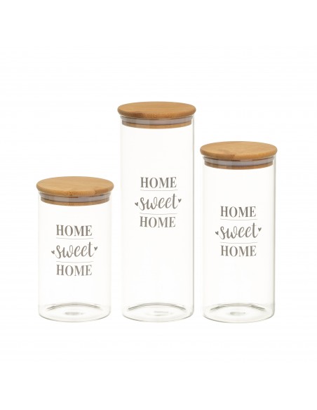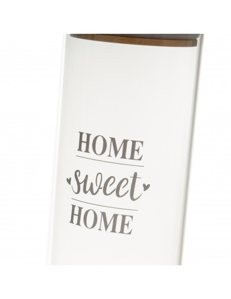 Su diseño limpio y transparente está decorado con la frase "Home Sweet Home" en letras elegantes. Perfecto para almacenar alimentos secos como pasta, arroz, café o galletas, manteniéndolos frescos y bien organizados.