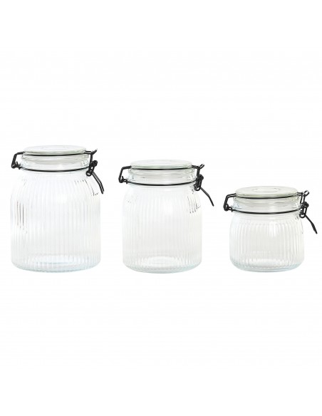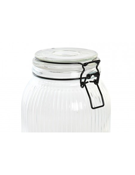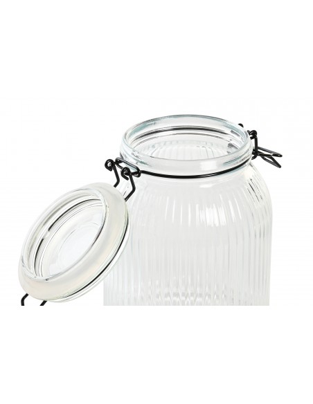 Está fabricado en cristal transparente con la palabra y cuenta con una tapa de cerámica negra con cierre a presión de acero del mismo color.