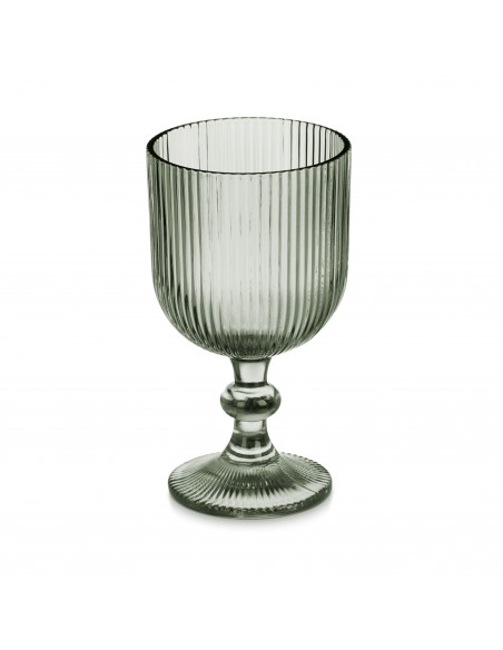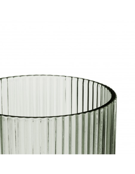 Con una elegante forma y moderno diseño esta copa está fabricada en cristal verde con un especial relieve de líneas verticales.