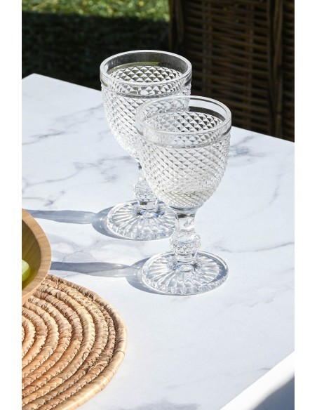 Elegante copa de cristal tranasparente con un bonito diseño labrado que dará un toque elegante y sofisticado a tu mesa.