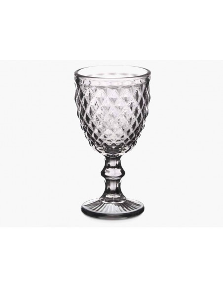 Elegancia y estilo se combinan en esta copa de vidrio con diseño en relieve estilo diamante.