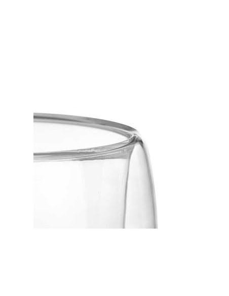 Está fabricado en vidrio borosilicato con diseño de doble pared que mantiene la temperatura por más tiempo y evita quemaduras al contacto.