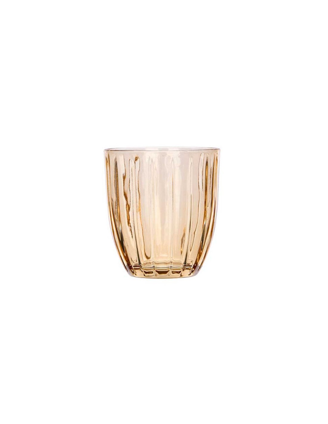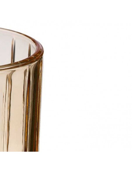 Elegante vaso de cristal con diseño de rayas vertical que aporta textura y un aire retro a la mesa.