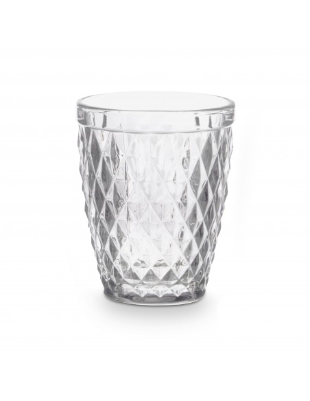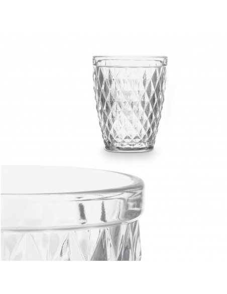Elegante vaso de cristal transparente con un bonito diseño labrado de rombos que dará un toque elegante y sofisticado a tu mesa.