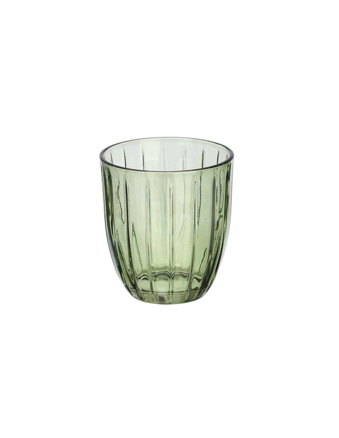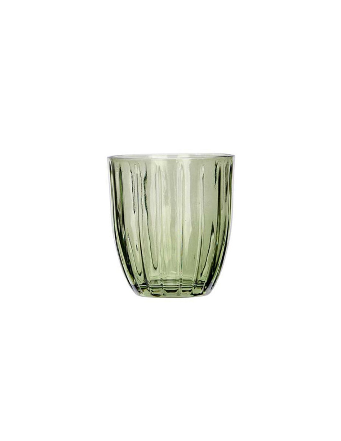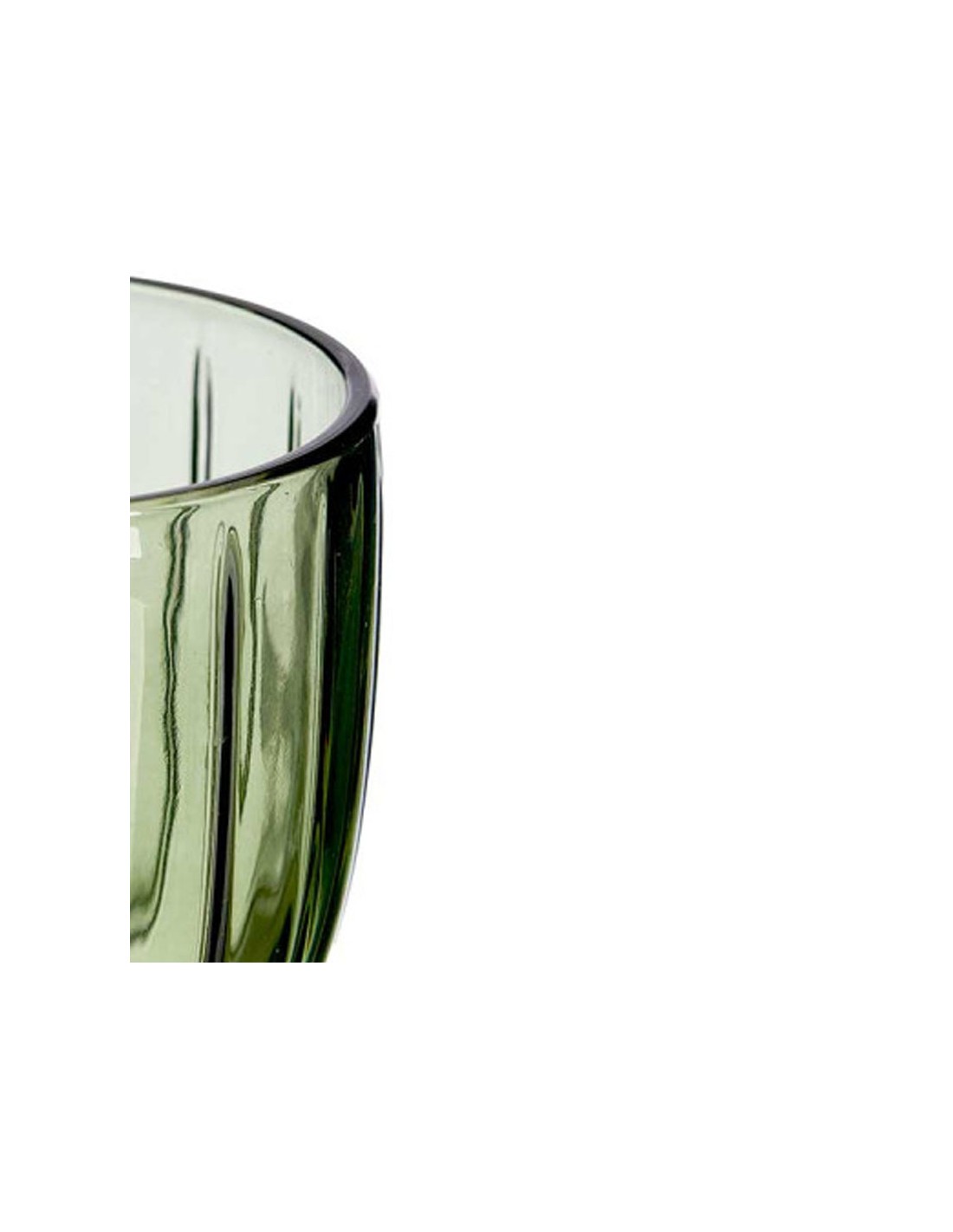 Elegante vaso de cristal con diseño de rayas vertical que aporta textura y un aire retro a la mesa.