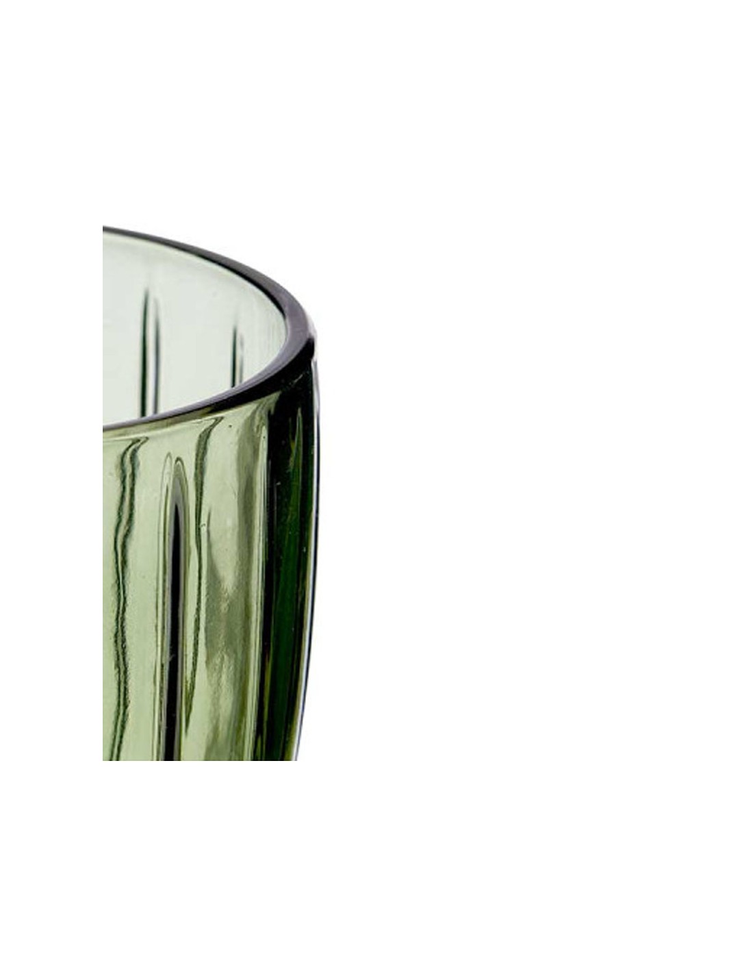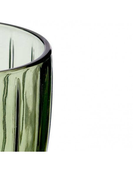 Elegante vaso de cristal con diseño de rayas vertical que aporta textura y un aire retro a la mesa.