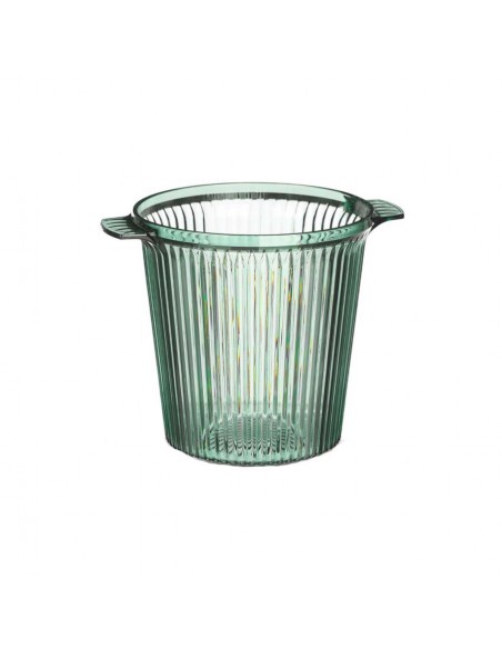 Bonita champanera de plástico en tono verde con diseño acanalado que aporta un aire sofisticado a la mesa.