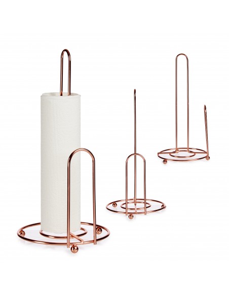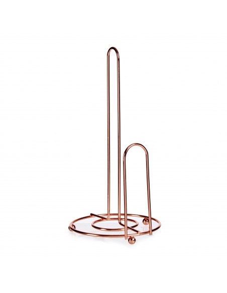 Portarollos fabricado en metal de color oro rosa para el papel absorbende de cocina.