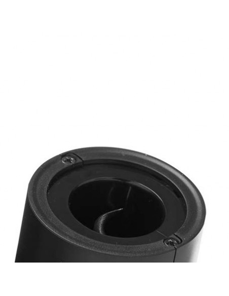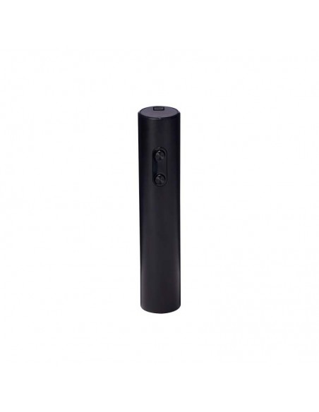 Moderno sacacorchos eléctrico en color negro con diseño cilíndrico y botones de fácil uso.