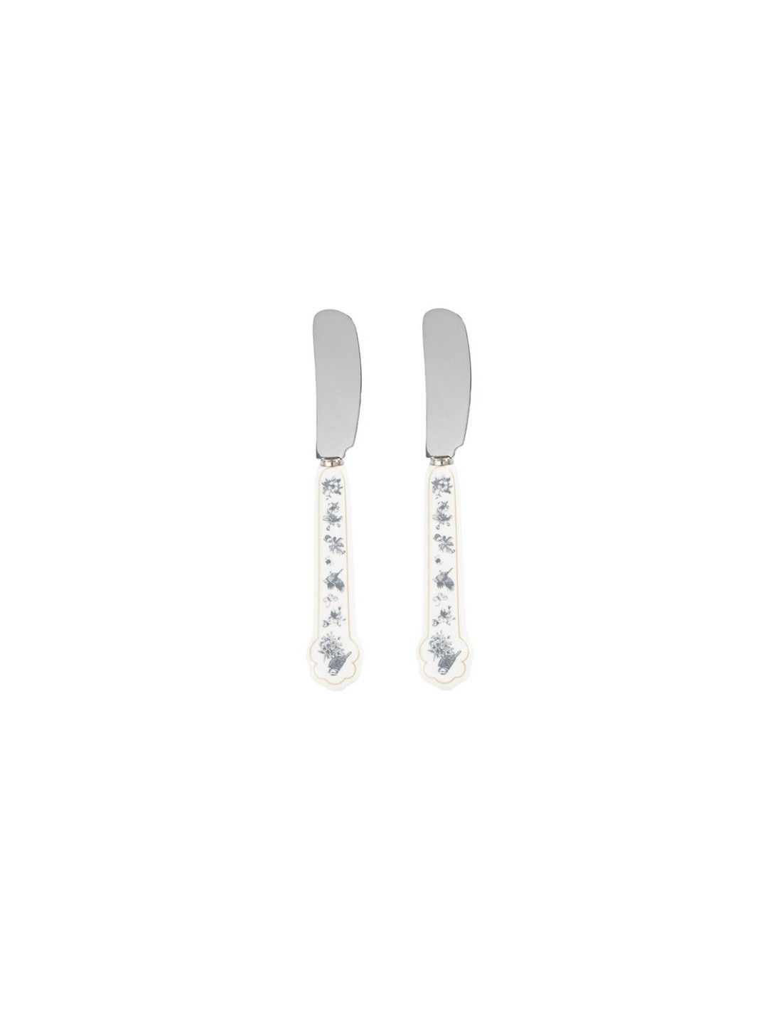Delicado set de dos cuchillos para untar con mango decorado con un encantador estampado floral en tonos suaves.