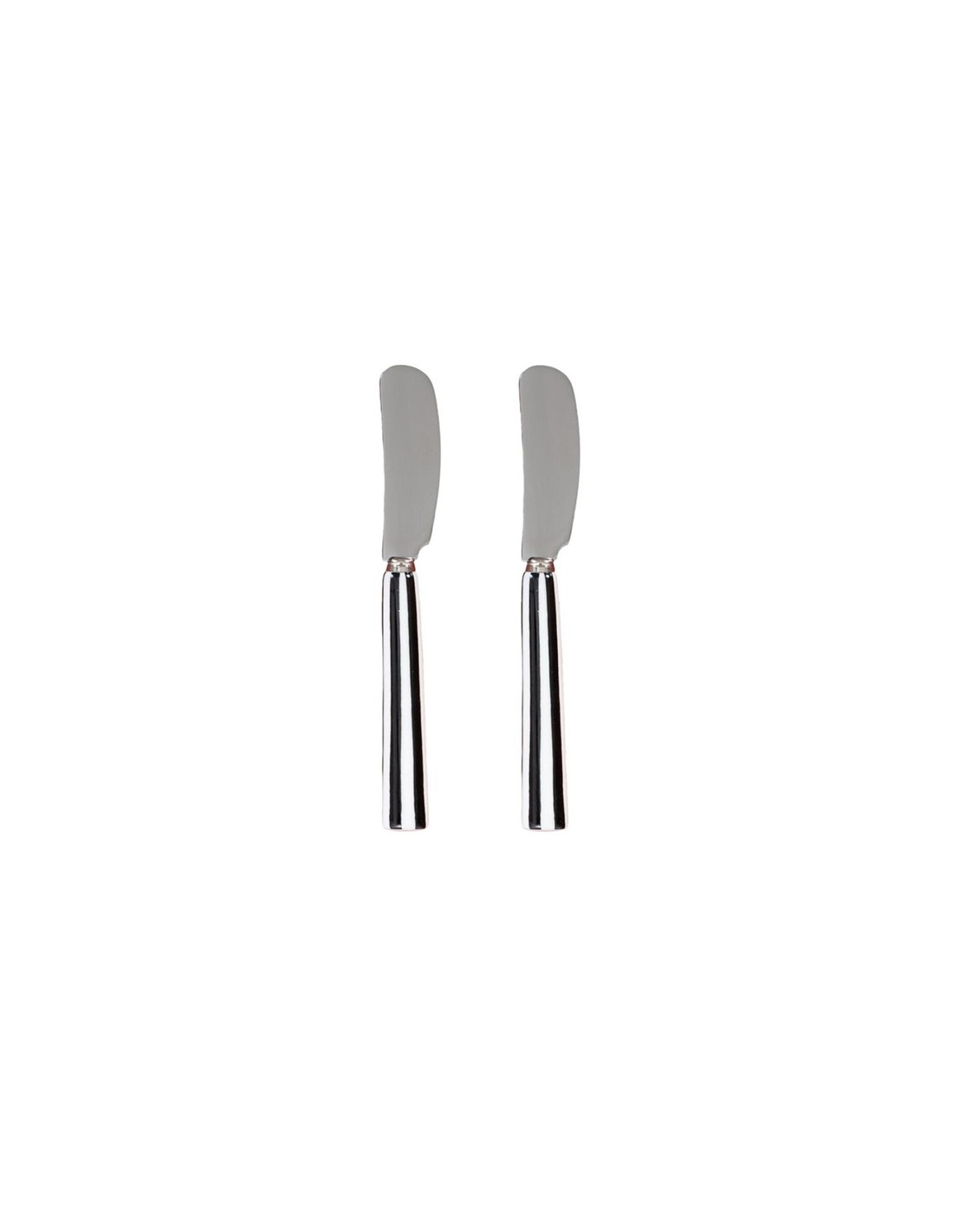 Práctico set de dos cuchillos para untar con hoja redondeada y mango liso acabado en brillo.