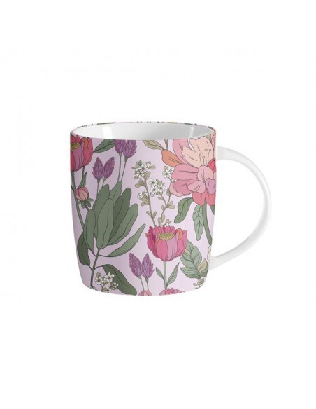 Su diseño es precioso, con fondo liso y un original estampado multicolor de diferentes flores y hojas rosas y verdes muy primaveral.