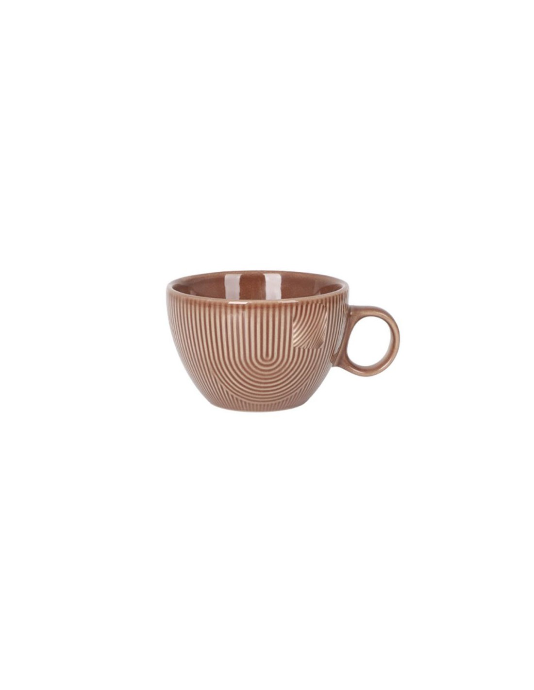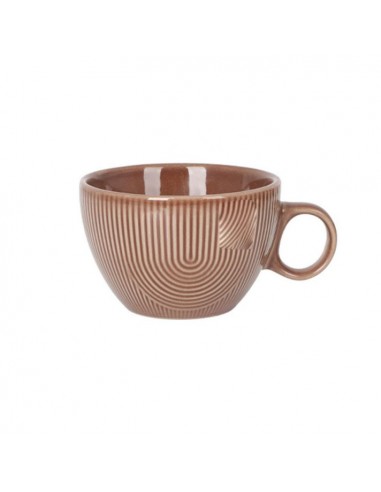 Encantadora taza con diseño redondeado y relieve en líneas curvas que crean un patrón envolvente muy decorativo. Apta para lavavajillas y microondas.