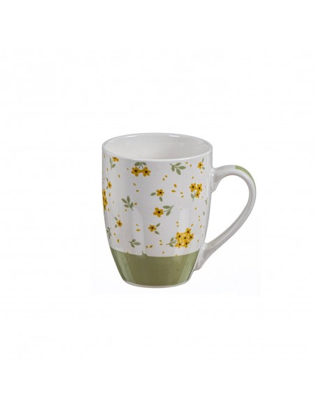 Disfruta de tu bebida favorita con esta encantadora taza de cerámica decorada con delicados dibujos de flores amarillas.