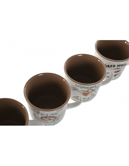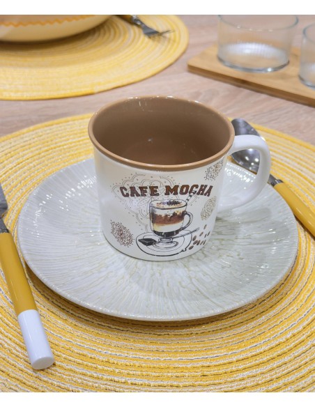 Está hecha de porcelana con dibujos de diferentes tipos de café y detalles en tonos tierra súper acogedores.