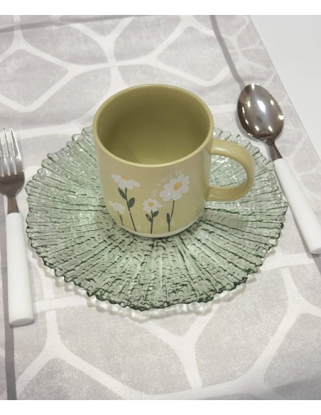 Su diseño floral con margaritas y mensaje positivo la convierte en una opción ideal para empezar el día con una sonrisa.