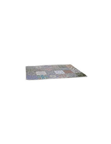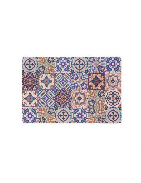 Práctico salvamantel individual rectangular fabricado en PVC con estampado de mosaicos de colores que recuerda a los azulejos tradicionales.