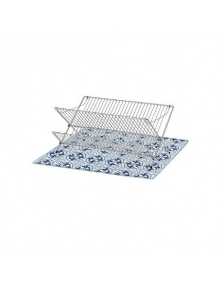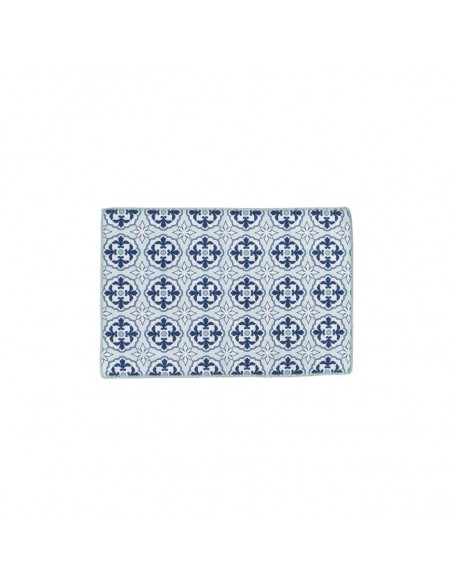 Práctico tapete con estampado inspirado en azulejos azules. Su tejido absorbente protege la encimera y ayuda a que la vajilla se seque de forma rápida y segura.
