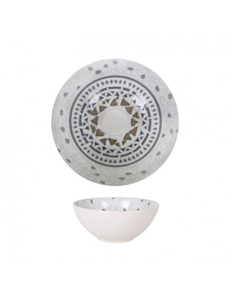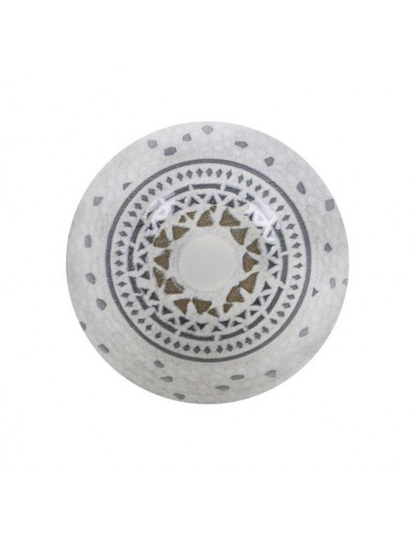 Bol de estilo barroco con un diseño de imitanción mosaico donde mezcla diferentes formas y colores claros y oscuros.