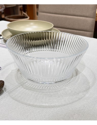 Bonita ensaladera de cristal transparente con relieve lineal que aporta un aire fresco y elegante a tu mesa. Su forma amplia y práctica la convierte en una pieza versátil para el día a día y para ocasiones especiales.