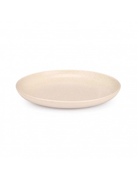 Plato postre de cerámica de color crema con original diseño moteado, ideal para darle un toque moderno a tu mesa.