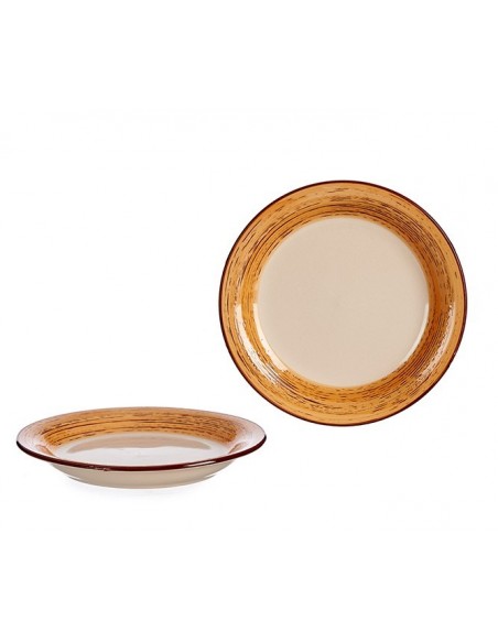 Este plato de postre de gres, con una cenefa naranja decorativa, combina elegancia y funcionalidad.