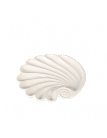 Ideal para quienes sueñan con el mar en casa. Esta bandeja de cerámica en color blanco tiene forma de concha y un diseño suave y elegante.