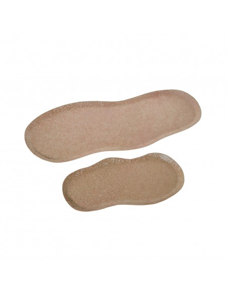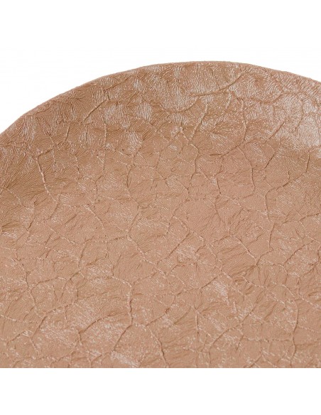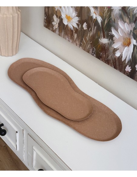 Elegante bandeja decorativa de metal en un suave tono rosa, con acabado texturizado que imita las formas naturales. Su diseño alargado y ondulado le aporta un toque orgánico y contemporáneo.