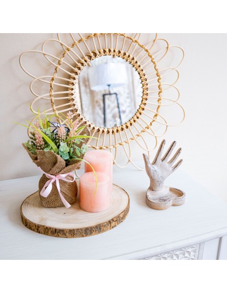 Rodaja de tronco de madera natural para colocar en mesas de estilo rústico.