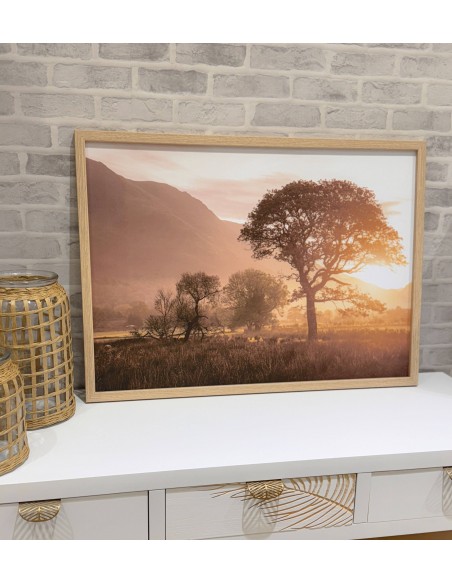 Cuadro decorativo con marco de madera, ideal para aportar un toque artístico a cualquier estancia.