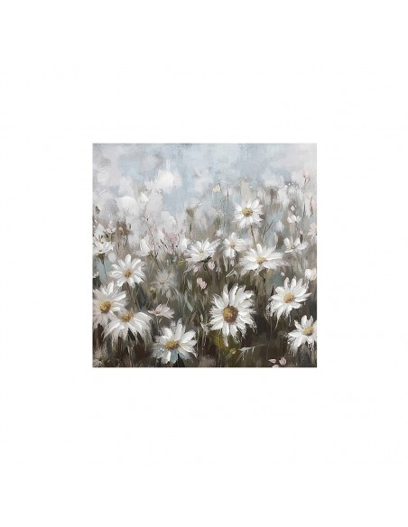 Bonito cuadro decorativo en lienzo con ilustración de margaritas sobre fondo en tonos suaves. Tiene un 40% de pintura a mano, lo que le da un acabado con relieve y un toque artístico único.