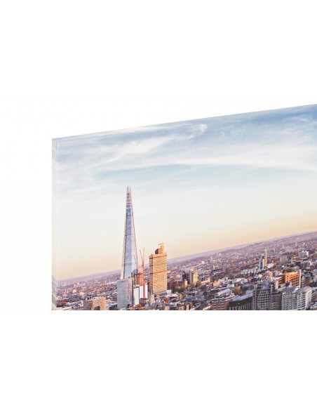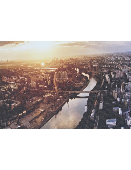 Espectacular cuadro apaisado de 90cm de ancho con el skyline de una ciudad al atardecer.