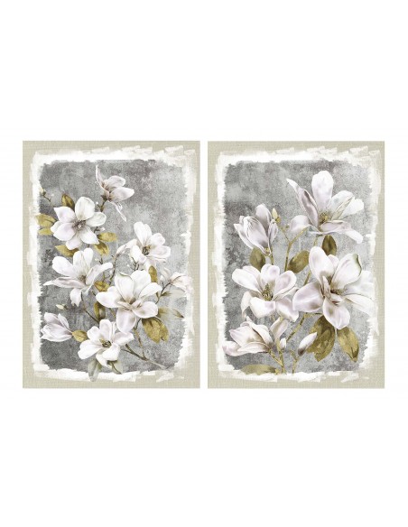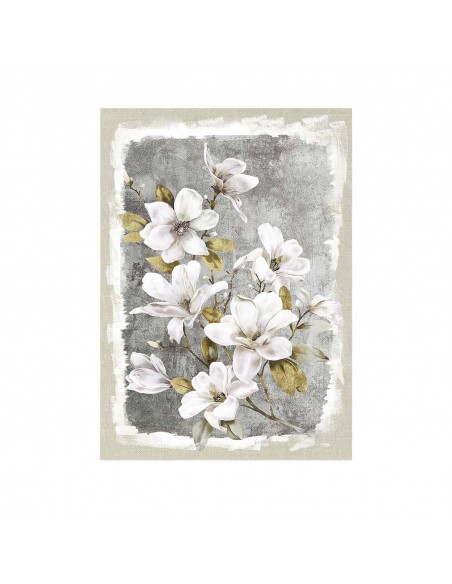 Bonito cuadro lienzo rectangular con un diseño muy elegante de flores blancas que resaltan sobre el fondo oscuro.