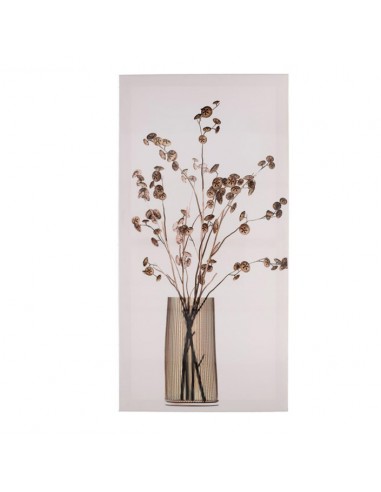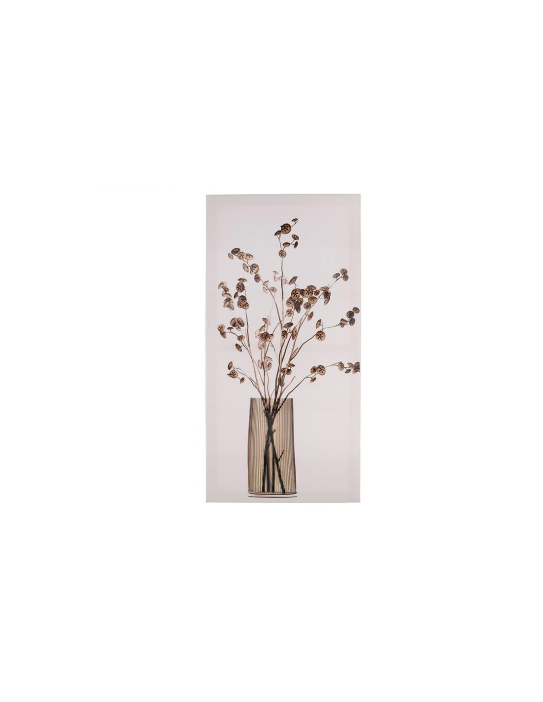 Cuadro en lienzo con imagen de ramas secas en un jarrón acanalado, sobre fondo claro que realza la composición con un estilo natural y minimalista.