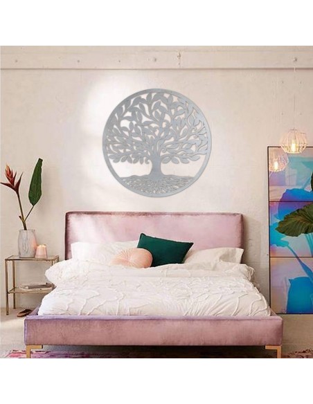 Espectacular mural de pared circular en color blanco. Este original mural del árbol de la vida no pasará desapercibido en tu hogar.