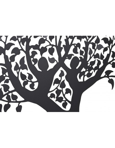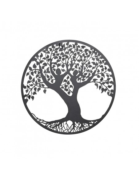 Original decoración de pared fabricada en metal de color negro con dibujo de un gran árbol echando raices de 40 cm de diametro.