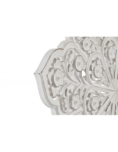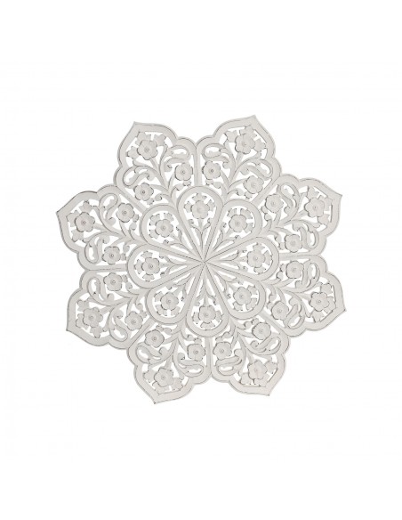 Fabricado en madera, destaca por su forma de estrella y tallado en blanco decapado. Quedará perfecto en el salón o en el dormitorio y te resultará muy fácil combinarlo con el resto de elementos decorativos.