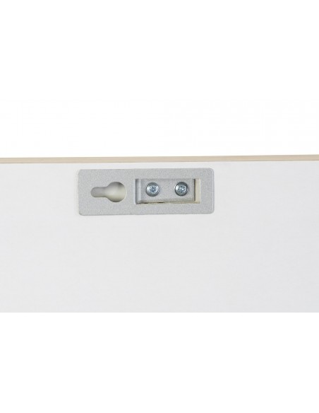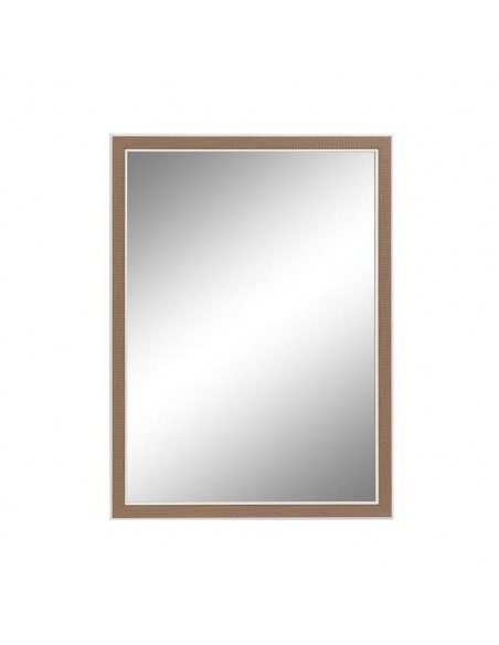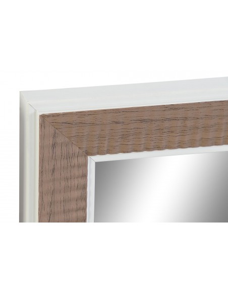 Espejo rectangular con un diseño muy sencillo y un fino marco de PVC imitación madera que combina color blanco y marrón.