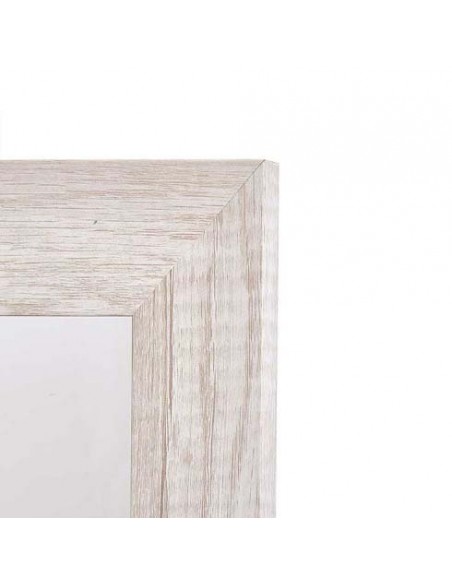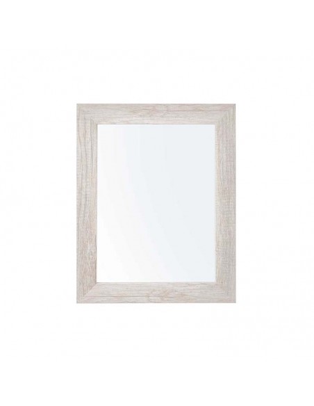 Bonito espejo rectangular con marco en tono madera decapada que aporta un aire natural y ligero a la decoración.