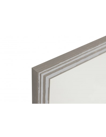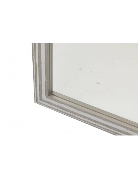 Este espejo rectangular aporta ligereza visual y un toque natural con su marco en efecto madera decapada gris.