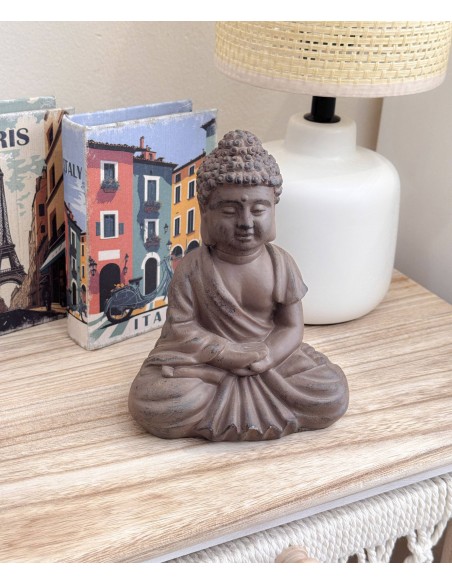 Agrega serenidad a tu espacio con esta estatua de Buda marrón.